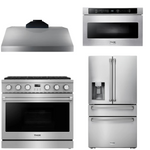 This Thor Kitchen Appliance Package is complete with a 36" Gas Range, 36" Range Hood, 36" Refrigerator and 24" Microwave.