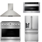 This Thor Kitchen Appliance Package is complete with a 36" Gas Range, 36" Range Hood, 36" Refrigerator and 24" Microwave.