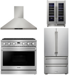 This Thor Kitchen Appliance Package is complete with a 36" Gas Range, 36" Range Hood, 36" Refrigerator and 24" Wine Cooler.