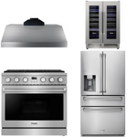 This Thor Kitchen Appliance Package is complete with a 36" Gas Range, 36" Range Hood, 36" Refrigerator and 24" Wine Cooler.