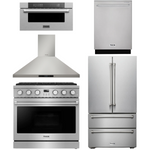 This Thor Kitchen Appliance Package is complete with a 36" Gas Range, 36" Range Hood, 36" Refrigerator, 24" Dishwasher and 30" Microwave.