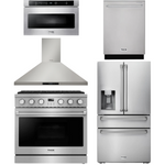 This Thor Kitchen Appliance Package is complete with a 36" Gas Range, 36" Range Hood, 36" Refrigerator, 24" Dishwasher and 24" Microwave.