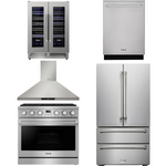 This Thor Kitchen Appliance Package is complete with a 36" Gas Range, 36" Range Hood, 36" Refrigerator, 24" Dishwasher and 24" Wine Cooler.