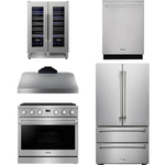 THOR Contemporary Package - 36" Gas Range, Range Hood, Refrigerator, Dishwasher and Wine Cooler, AP-ARG36LP-B104