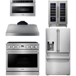 This Thor Kitchen Appliance Package is complete with a 36" Gas Range, 36" Range Hood, 36" Refrigerator, 24" Microwave and 24" Wine Cooler.