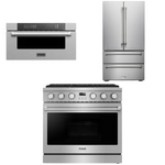 This Thor Kitchen Appliance Package is complete with a 36" Gas Range, 36" Refrigerator and 30" Microwave.