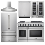 This Thor Kitchen appliance package has a powerful stainless steel 48 inch natural gas range, 48 inch range hood, 36 inch refrigerator, 24 inch dishwasher, and 24 inch wine cooler.