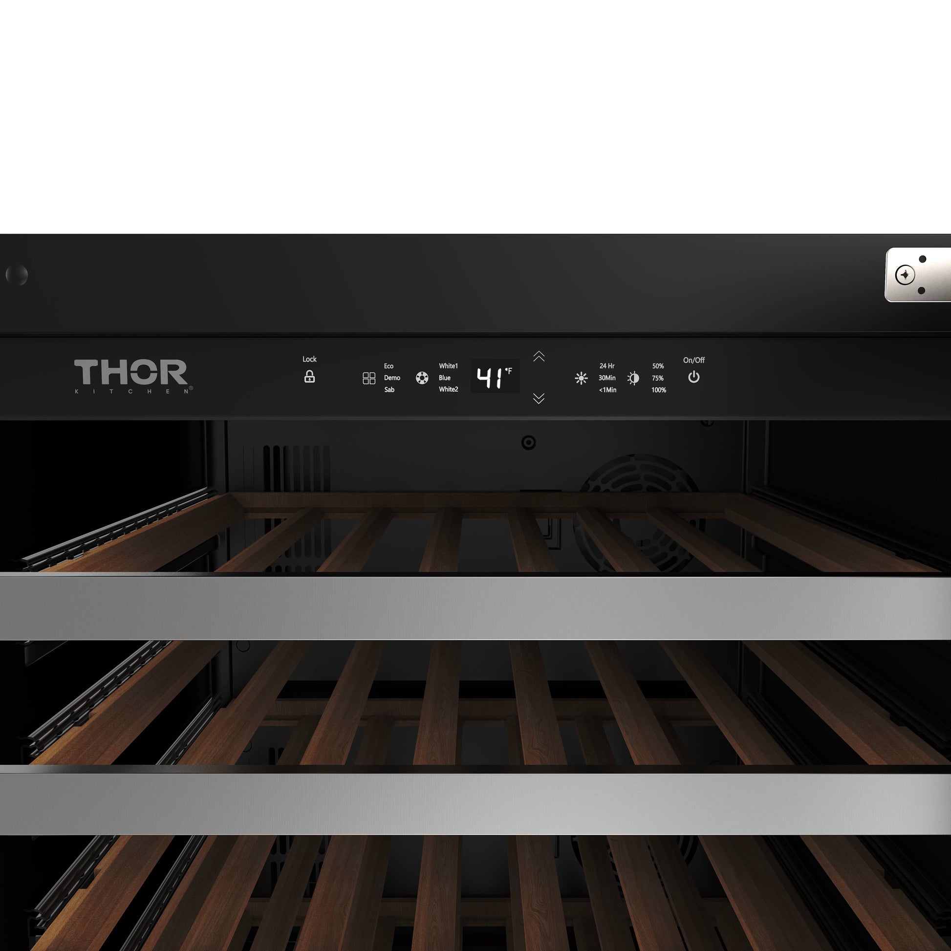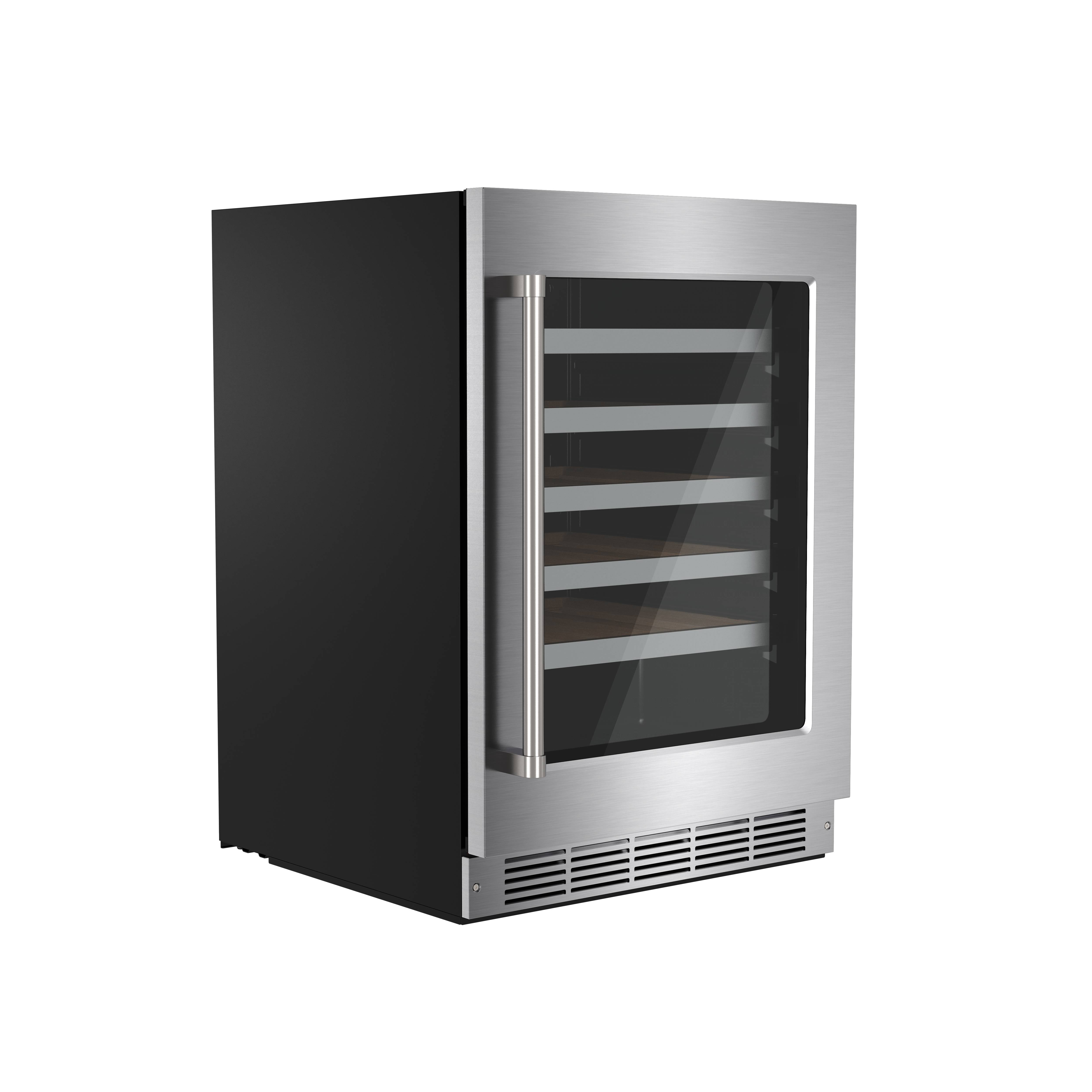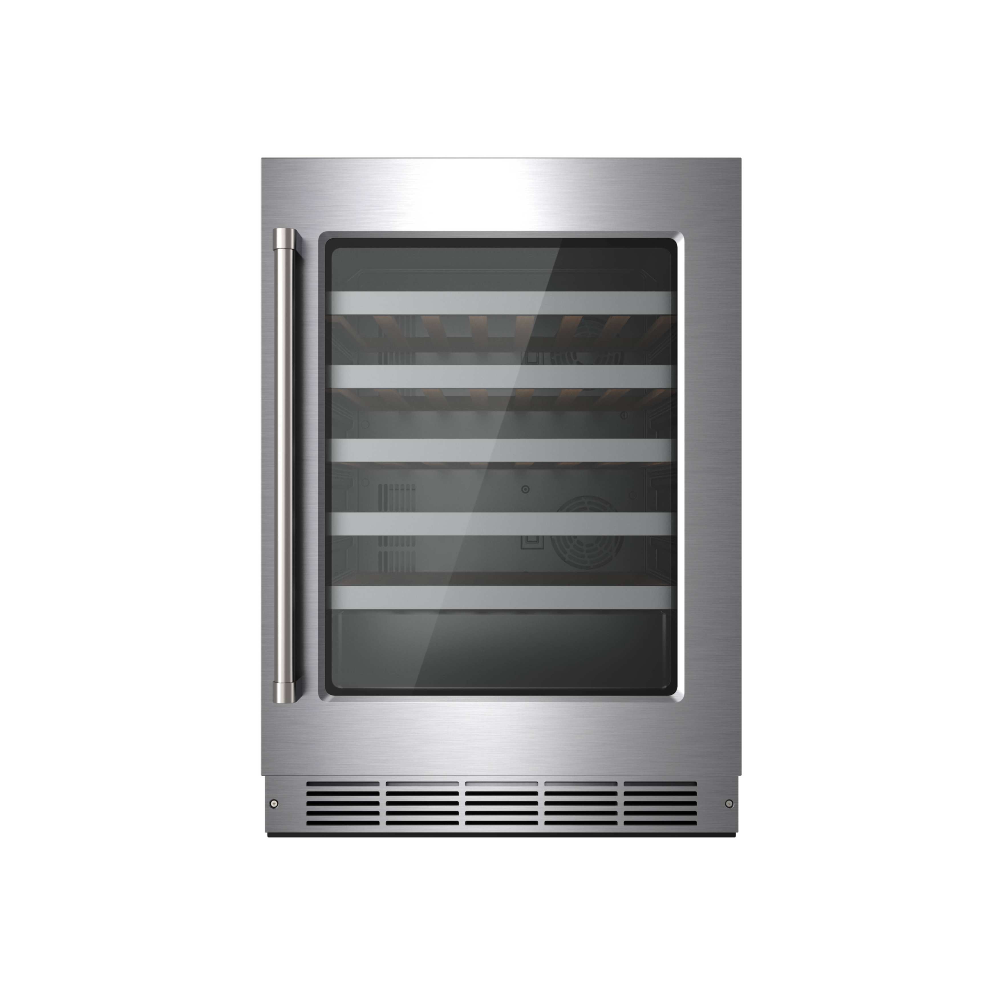 Designed for sophisticated wine storage, this cooler blends elegance and performance in either built-in or freestanding setups. With a spacious 4.9 cu ft (139 L) capacity accommodating up to 46 bottles—21 in the upper zone and 25 below—it’s perfect for enthusiasts and collectors alike.