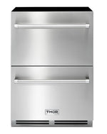 This THOR Kitchen 24" Built-in Double Drawer Refrigerator, TRF24U in stainless steel will make a sleek addition to your kitchen, pantry or outdoor patio. The refrigerator is equipped with a large storage capacity, dual drawers, and features convection cooling system with anti-fingerprint surface.