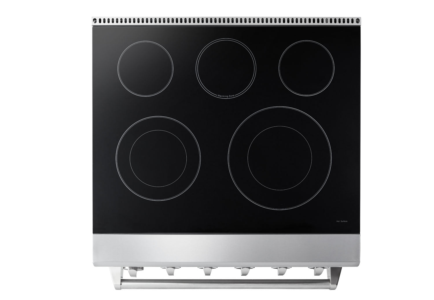 - Smooth Glass Top. Easy to fit in a 30-Inch space, this freestanding professional electric range features a frameless glass top that is flush with the countertop giving it a seamless look that is easy to clean