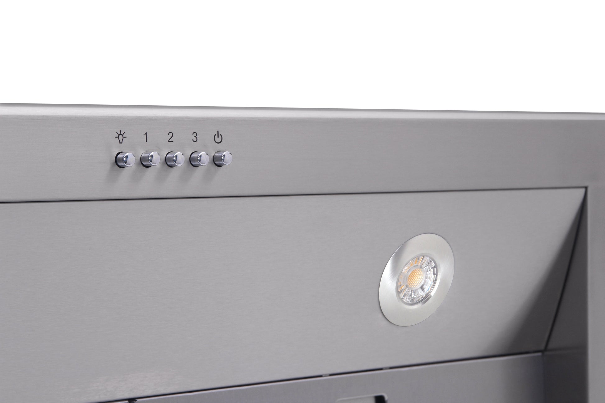 The THOR Kitchen 30 Inch Under Cabinet LED Range Hood in Stainless Steel, TRH3005, is a compact powerhouse that adds a modern look to your kitchen and is designed to eliminate odors, smoke and steam quietly and efficiently. Fish on the plate? Good. The lingering aroma of fish in every room? Not so good.