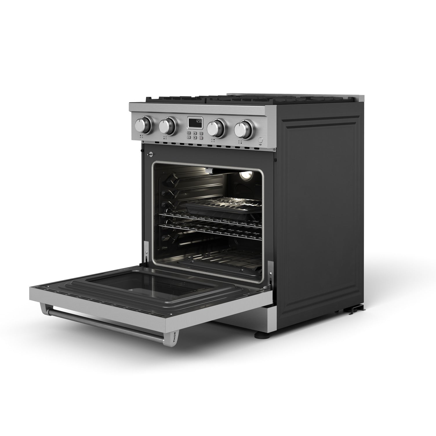 THOR Kitchen offers the power and performance of a premium professional appliance at a practical price. The THOR Kitchen 30 Inch Professional Propane Gas Range is a stainless-steel machine designed with professional features and functionality. With easily accessible controls, high-powered burners, continuous grates and a commercial convection fan, this range takes everything from prime rib to snickerdoodles to the next level.