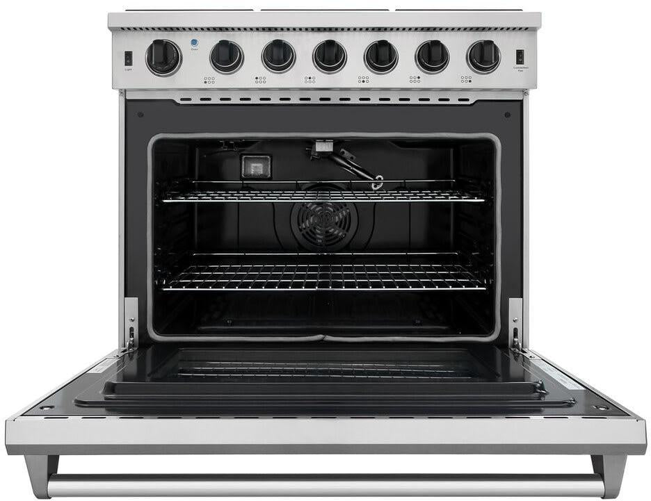 Looking for a gas range with a large oven!? You found it here with THOR Kitchen's 36" Inch Gas Range, LRG3601ULP. Perfect for all kitchen and cooking styles! This unit proves that good things come in small packages! With powerful burners, continuous grates and a professional style, this compact design is perfect for small kitchen spaces while packing a powerful punch.