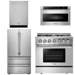 This premium Thor Kitchen appliance package is complete with a Professional 36 inch Dual Fuel Range, 36 inch refrigerator, 24 inch dishwasher and 24 inch microwave drawer. This premium and professional appliance bundle is available for your kitchen remodel or build at an affordable price!