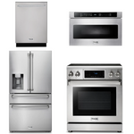 This Thor Kitchen appliance package is complete with a Professional 30" Electric Range, 36" Refrigerator with Water and Ice dispenser, 24" Dishwasher and 24" Microwave Drawer.
