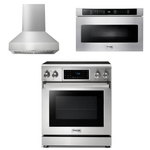 This premium Thor Kitchen appliance package is complete with a Professional 30" Electric Range, 30" Wall Mount Range Hood, and 24" Microwave Drawer.