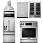 This Thor Kitchen appliance package is complete with a Professional 30" Electric Range, 30" Range Hood, Refrigerator with Water and Ice Dispenser, Dishwasher, Wine Coolers, and a Microwave Drawer.