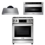 This premium Thor Kitchen appliance package is complete with a Professional Self-Clean 30" Gas Range, 30" Under Cabinet Range Hood, and 24" Microwave Drawer.