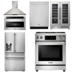 THOR Kitchen Package - 30" Gas Range, Range Hood, Microwave, Refrigerator with Water and Ice Dispenser, Dishwasher, Wine Cooler, AP-TRG3001-14