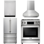 This premium Thor Kitchen appliance package is complete with a Professional 30" Gas Range, 30" Wall Mount Range Hood, 24" Dishwasher and 36" Counter Depth Refrigerator.