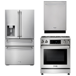 This premium Thor Kitchen appliance package is complete with a Professional 30" Gas Range, 30" Wall Mount Range Hood, 24" Dishwasher and 36" Refrigerator with Water and Ice Dispenser In-Door.
