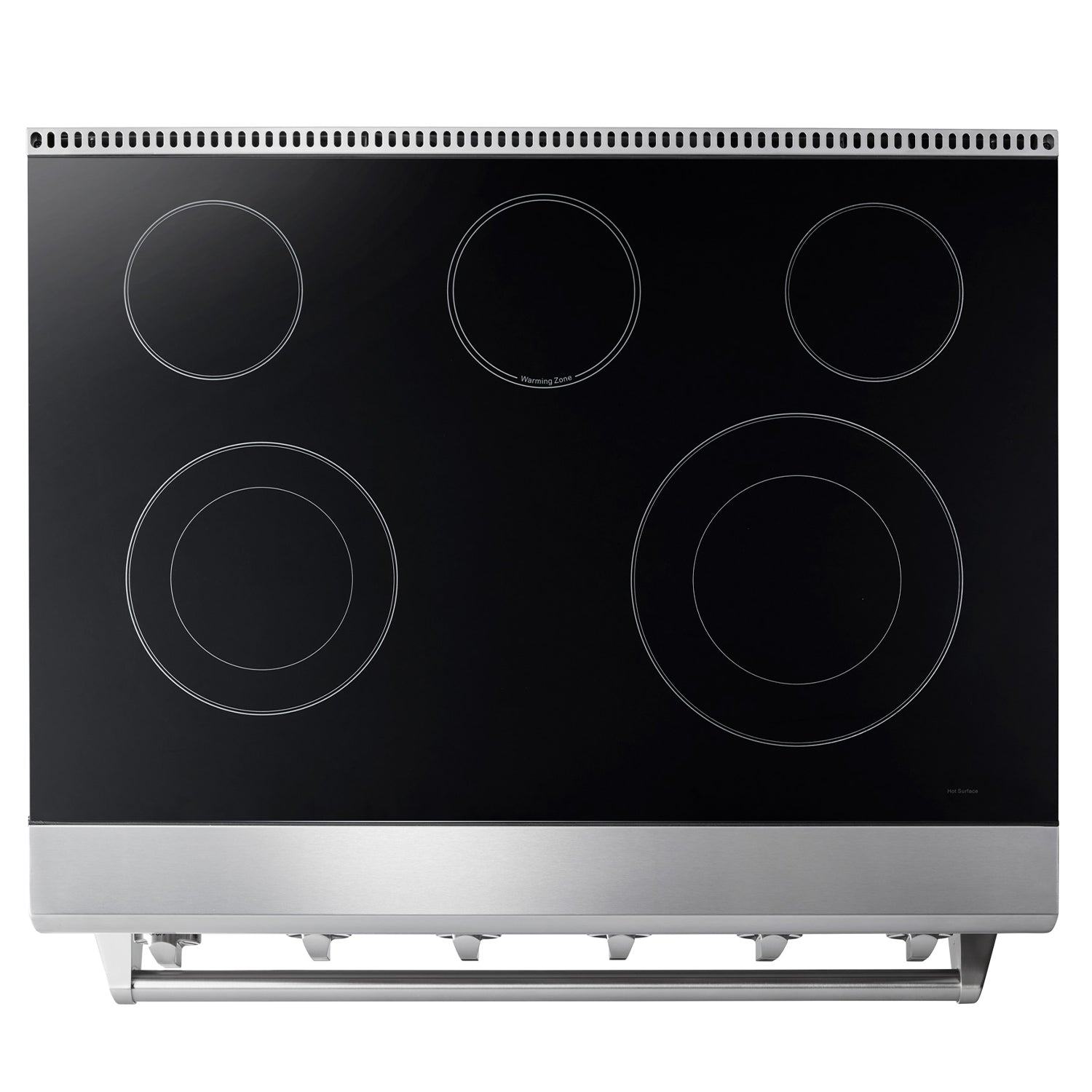 - Smooth Glass Top. Easy to fit in a 36-Inch space, this freestanding professional electric range features a frameless glass top that is flush with the countertop giving it a seamless look that is easy to clean