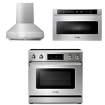 This premium Thor Kitchen appliance package is complete with a Professional 36" Electric Range, 36" Wall Mount Range Hood, and 24" Microwave Drawer.