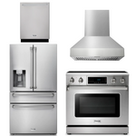 This premium Thor Kitchen appliance package is complete with a Professional 36" Electric Range, 36" Wall Mount Range Hood, 24" Dishwasher and 36" French Door Refrigerator with Water and Ice Maker In-Door.