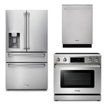 This premium Thor Kitchen appliance package is complete with a Professional 36" Electric Range, 36" Wall Mount Range Hood, 24" Dishwasher and 36" Refrigerator with Water and Ice Dispenser In-Door.
