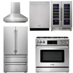 This premium Thor Kitchen appliance package is complete with a Professional 36" Propane Gas Range, 36" Range Wall Mount Hood, 24" Dishwasher and 36" Counter Depth Refrigerator, and 24" Wine Cooler.