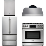 This premium Thor Kitchen appliance package is complete with a Professional 36" Gas range, 36" Under Cabinet Range Hood, 36" French door Refrigerator, 24" dishwasher.