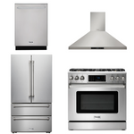 This premium Thor Kitchen appliance package is complete with a Professional 36" Gas Range, 36" Wall Mount Range Hood, 24" Dishwasher and 36" Counter Depth Refrigerator.