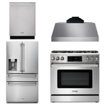 This premium Thor Kitchen appliance package is complete with a 36" Gas Range, 36" Under Cabinet Range Hood, 24" Dishwasher and 36" French Door Refrigerator with Water and Ice Maker In-Door.