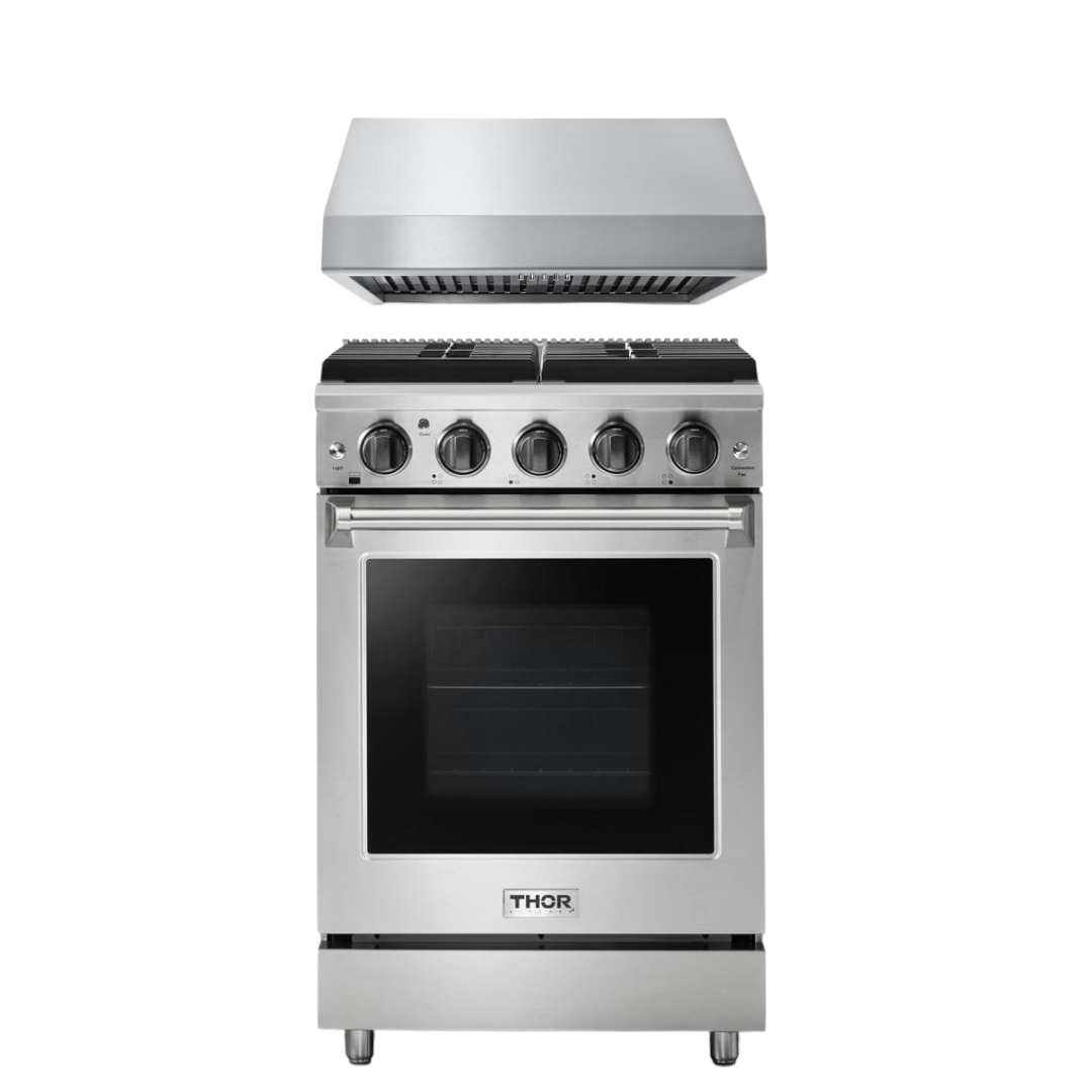 The Thor Kitchen Package - 24 in. Gas Range, Range Hood - Stainless Steel, AP-LRG2401U is perfect for your next kitchen model, and comes at a highly affordable price!