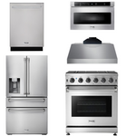 This Thor Kitchen appliance package is complete with a Professional 30 inch Propane Gas Range, 30 inch Under Cabinet Range Hood, refrigerator with water and ice dispenser, dishwasher and microwave drawer.