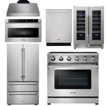 THOR Kitchen Package - 36" Electric Range, Range Hood, Microwave, Refrigerator, Dishwasher, Wine Cooler, AP-HRE3601-C-6