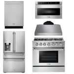 THOR Kitchen Package - 36" Gas Range, Range Hood, Microwave, Refrigerator with Water and Ice Dispenser, Dishwasher, AP-HRG3618U-C-9