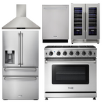 This Thor Kitchen appliance package has a powerful stainless steel 36 inch natural gas range, 36 inch range hood, 36 inch refrigerator with water and ice dispenser, 24 inch dishwasher, and a dual zone wine cooler. This premium and professional appliance bundle is available for your kitchen remodel or build at an affordable price!