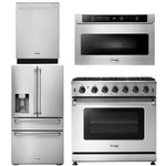 This Thor Kitchen appliance package has a powerful stainless steel 36 inch propane gas range, 36 inch refrigerator with water and ice dispenser, 24 inch dishwasher and 24 inch microwave drawer. This premium and professional appliance bundle is available for your kitchen remodel or build at an affordable price!