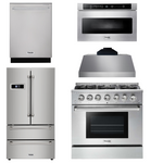 This Thor Kitchen appliance package has a powerful stainless steel 36" propane gas range, 36" under cabinet range hood, 36 inch refrigerator, 24 inch dishwasher and 24 inch microwave drawer.