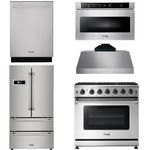 This Thor Kitchen appliance package has a powerful stainless steel 36 inch propane gas range, Under Cabinet Range Hood, 36 inch refrigerator with water and ice dispenser, 24 inch dishwasher and 24 inch microwave drawer.