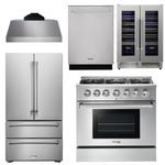 This Thor Kitchen appliance package has a powerful stainless steel 36 inch propane gas range, 36 inch under cabinet range hood, 36 inch refrigerator, 24 inch dishwasher, and 24 inch wine cooler.