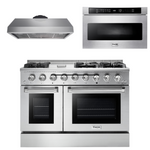 This premium Thor Kitchen appliance package is complete with a Professional 48" Dual Fuel Range, Under Cabinet Range Hood in Stainless Steel and a spacious 24" Microwave Drawer. This premium and professional 3 piece appliance bundle is available for your kitchen remodel or build at an affordable price!