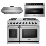 This Thor Kitchen appliance package has a powerful stainless steel 48 inch natural gas range, 48 inch range hood and 24 inch microwave drawer. This premium and professional appliance bundle is available for your kitchen remodel or build at an affordable price!