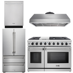 This Thor Kitchen appliance package has a powerful stainless steel 48 inch range, 48 inch undercabinet range hood, 24 inch dishwasher and 36 inch counter-depth refrigerator. This premium and professional appliance bundle is available for your kitchen remodel or build at an affordable price!