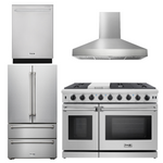 This Thor Kitchen appliance package has a powerful stainless steel 48 inch propane gas range, 48 inch wall mount range hood, 24 inch dishwasher and counter-depth refrigerator. This premium and professional appliance bundle is available for your kitchen remodel or build at an affordable price!