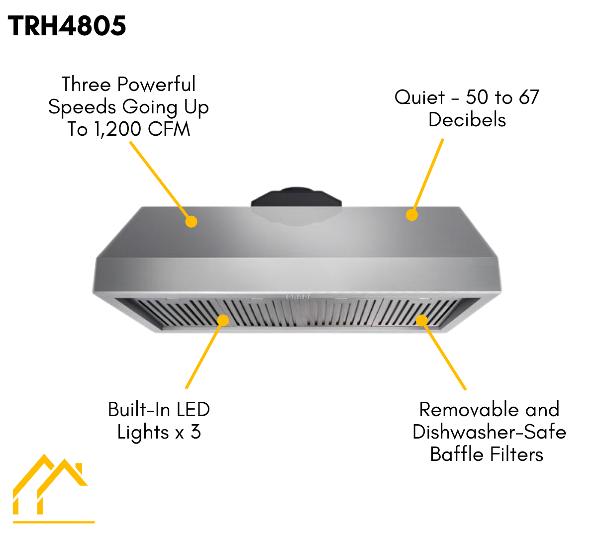• 1,200 CFM of Suction. 1,200 CFM of suction effectively removes odors, smoke, grease and moisture from your cooking area