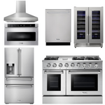 THOR Kitchen Package - 48" Gas Range, Range Hood, Refrigerator with Water and Ice Dispenser, Dishwasher, Microwave, Wine Cooler, AP-HRG4808U-W-10