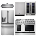 This premium Thor Kitchen appliance package is complete with a Professional 48" Gas Range, 48" Under Cabinet Range Hood, 36" Counter-Depth Refrigerator with Water and Ice Dispenser, a quiet but powerful 24 inch dishwasher and a dual zone 24 Inch Wine Cooler.