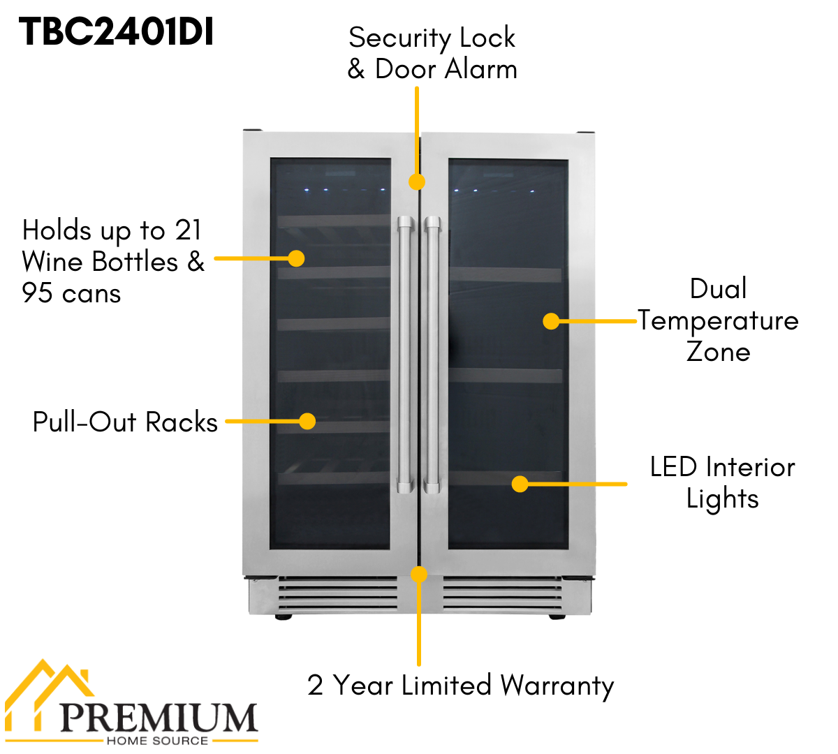 What is a perfectly cooked masterpiece without the perfectly preserved wine pairing? Accommodate your wine preservation requirements and personal taste—in wine, as well as décor. This beautifully designed 24 Inch French Door Wine and Beverage Center, TBC2401DI, is an entertainers dream. It features a temperature-controlled zone to preserve the flavor and integrity of your wine and a beverage center to keep ice cold beers and sodas on hand. You officially have no excuse to leave home. You’re welcome.